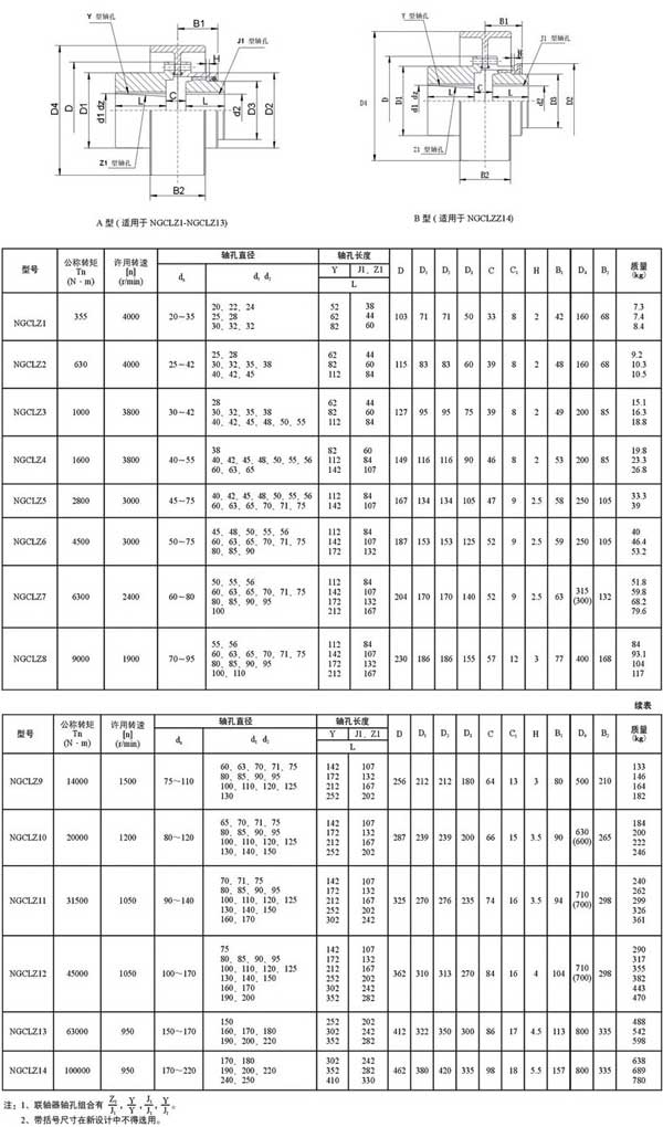 NGCLZ型帶制動輪鼓形齒式聯軸器 基本參數和主要尺寸
