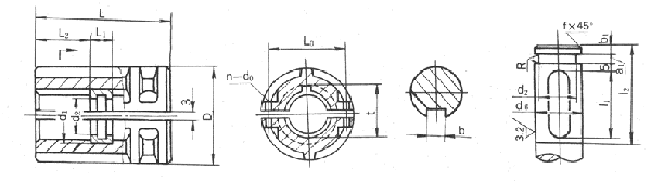 JQ型-夾殼連軸器 (HG5-213-65) 立式夾殼聯軸器的得特性與夾殼聯軸器近似,結構簡單,裝拆方便,適用于低速(最高圓周線速度為5M/S),無沖擊,振動載荷平穩(wěn)的場合,宜用于攪拌器等立軸的聯接。 夾殼聯軸器是利用兩個沿軸向剖分的夾殼,用螺栓夾緊以實現兩軸聯接,靠兩半聯軸器表面間的摩擦力傳遞轉矩,利用平鍵作輔助聯接。夾殼連軸器裝配和拆卸時軸不需軸向移動,所以裝拆很方便,夾殼連軸器的缺點是兩軸軸線對中精度低,結構和形狀比較復雜,制造及平衡精度較低,只適用于低速和載荷平穩(wěn)的場合,通常最大外緣的線速度不大于 5m/s ,當線速度超過 5m/s 時需要進行平衡校驗。