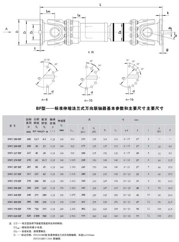 標準伸縮法蘭式聯軸器的共同特點是角向補償量較大,不同結構型式萬向聯軸器兩軸線夾角不相同,一般≤5°-45°之間。萬向聯軸器最大的特點是具有較大的角向補償能力,結構緊湊,傳