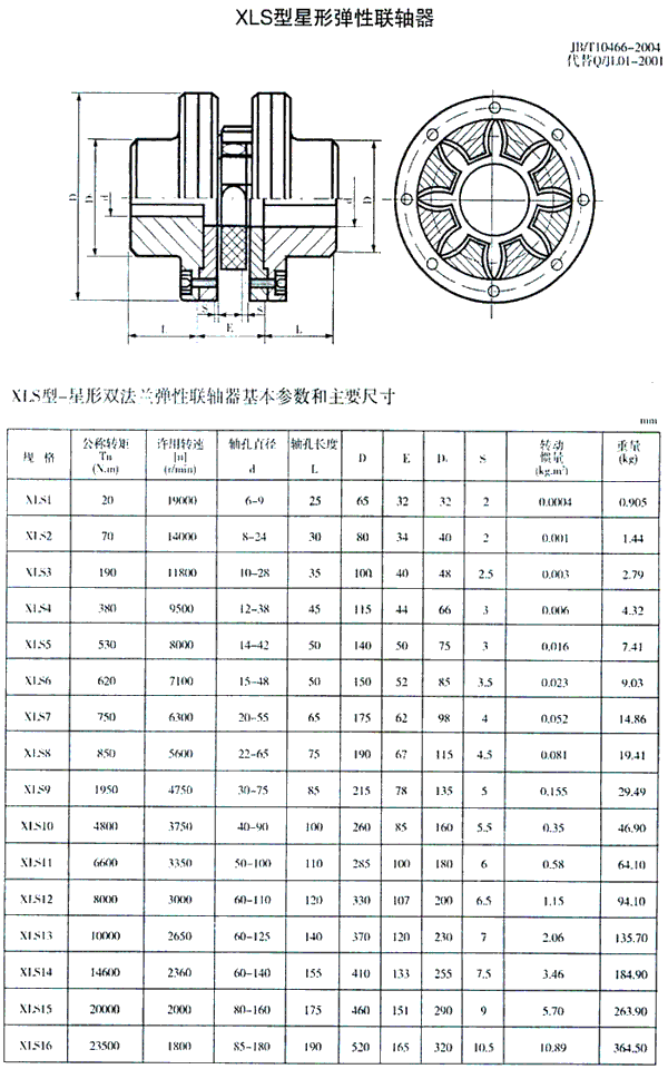 XLS型星形雙法蘭彈性聯軸器(JB/T 10466-2004)